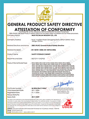 STEKELLIN®Les produits sont strictement conformes au niveau des règlements internationauxOSHA, NFPA, EPA et SPCC....... La plupart des produits ont passé des tests officiels et ont obtenu les certifications CE. Avec l’expansion constante et rapide l’équipe de recherche et développement, nous continuerons à fournirSTEKELLIN®Offre innovante et soutien professionnel à nos précieux partenaires, pour travailler ensemble pour un environnement plus sûr.